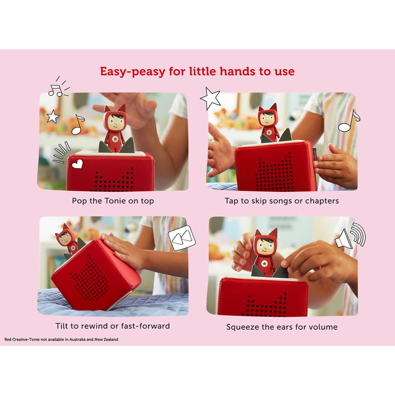 - The Toniebox combines audio and entertainment unlike any other way. When Tonies are placed on the Toniebox, magical worlds of music, adventures and fairy tales open up. After a simple setup, children can use the Toniebox on their own without any problems and turn their imagination into reality. Still want to know more? Scroll down to learn more about the tonies® universe!