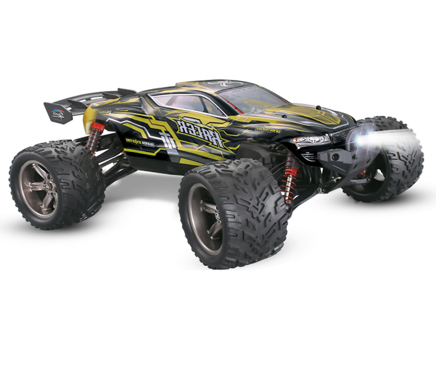 UPDATED 2S 7.4V BATTERY NEW TRANSMITTER UPDATED PLASTICS, SHOCKS & DRIVETRAIN Carton Size: 46×43×59 CM Scale: 1:12 Frequency: 2.4GHz Product Size: 34.2×26×13.5 CM Package size: 41.5×28.3×14.5 CM Speed: 40km/h Control distance: 80M Charging time: 2h Using time: 20 min Battery of Car: 7.4V 1500MA Li-ion Weight of the car: 1052 g Controller size: 16.5×9×21CM Package weight: 2010 g Controller battery: 'AA'×3 (Not including) Features: 1. The charger has charging voltage limiting protection. 2. The battery adopts over discharge protection and low voltage protection 3. The circuit board has overheat protection function. 4. The whole car has bearings, metal transmission shaft and transmission cup