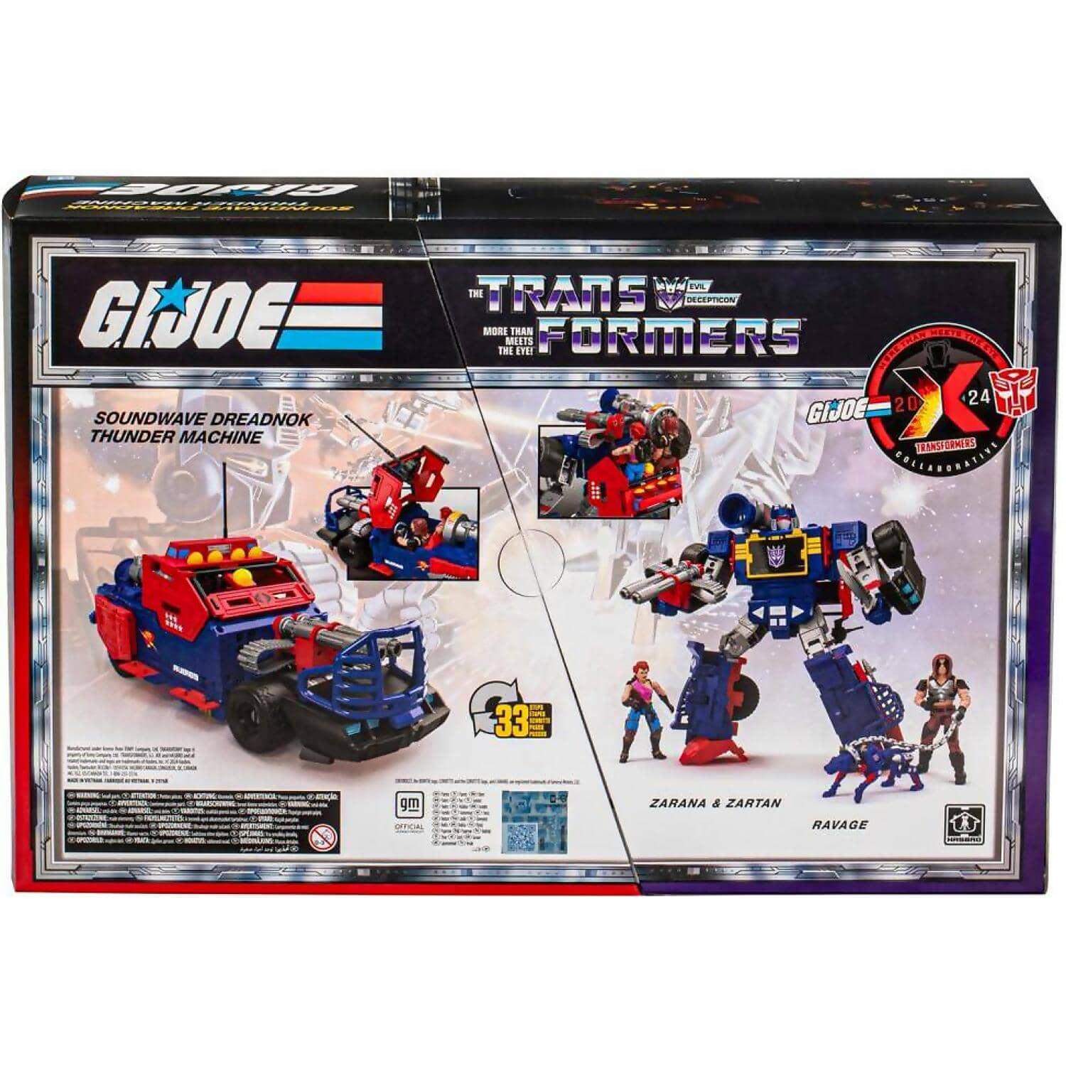 - G.I. JOE-INSPIRED ALT MODE: This 10-inch Soundwave figure converts from robot to the iconic Dreadnok Thunder Machine mode in 33 steps. The included Zartan and Zarana figures can fit inside the vehicle mode and behind the turret
