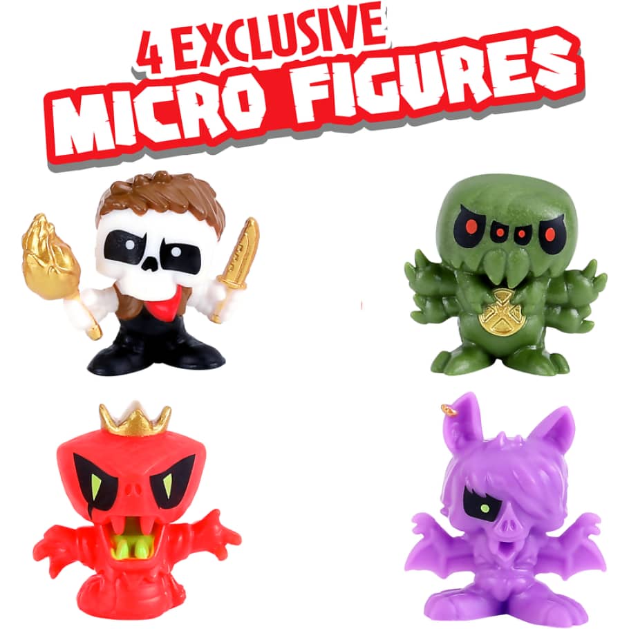 There are 4 different and EXCLUSIVE 1' Micro Figures for kids to search for and collect in the Lost Lands Skull Island Skull Temple! Find them hidden throughout the Temple and help them escape! Meet Hunta, Batboy, Aragog and Venom!