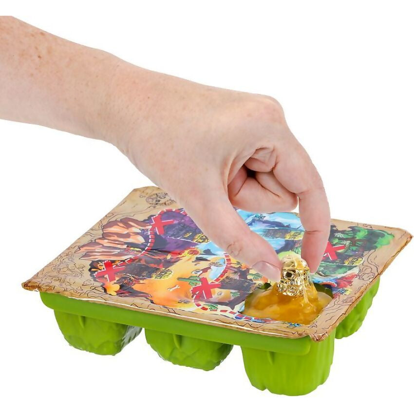 The Treasure X Lost Lands Skull Island Treasure Hunt Figure Pack has 10 levels of adventure. Slice through the treasure map, reveal 4 micro sized figures and discover treasure in golden ooze! 1 in 24 packs includes real gold dipped treasure.