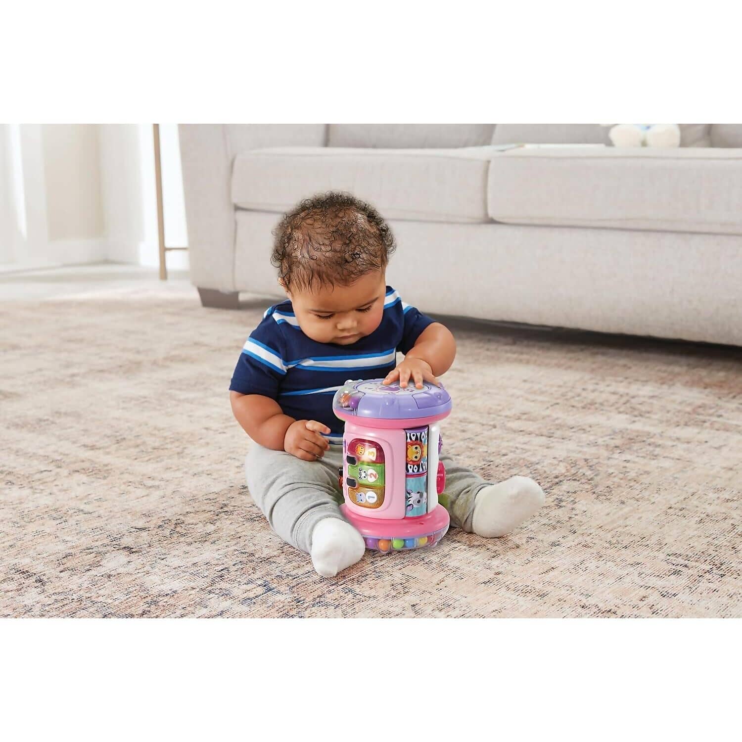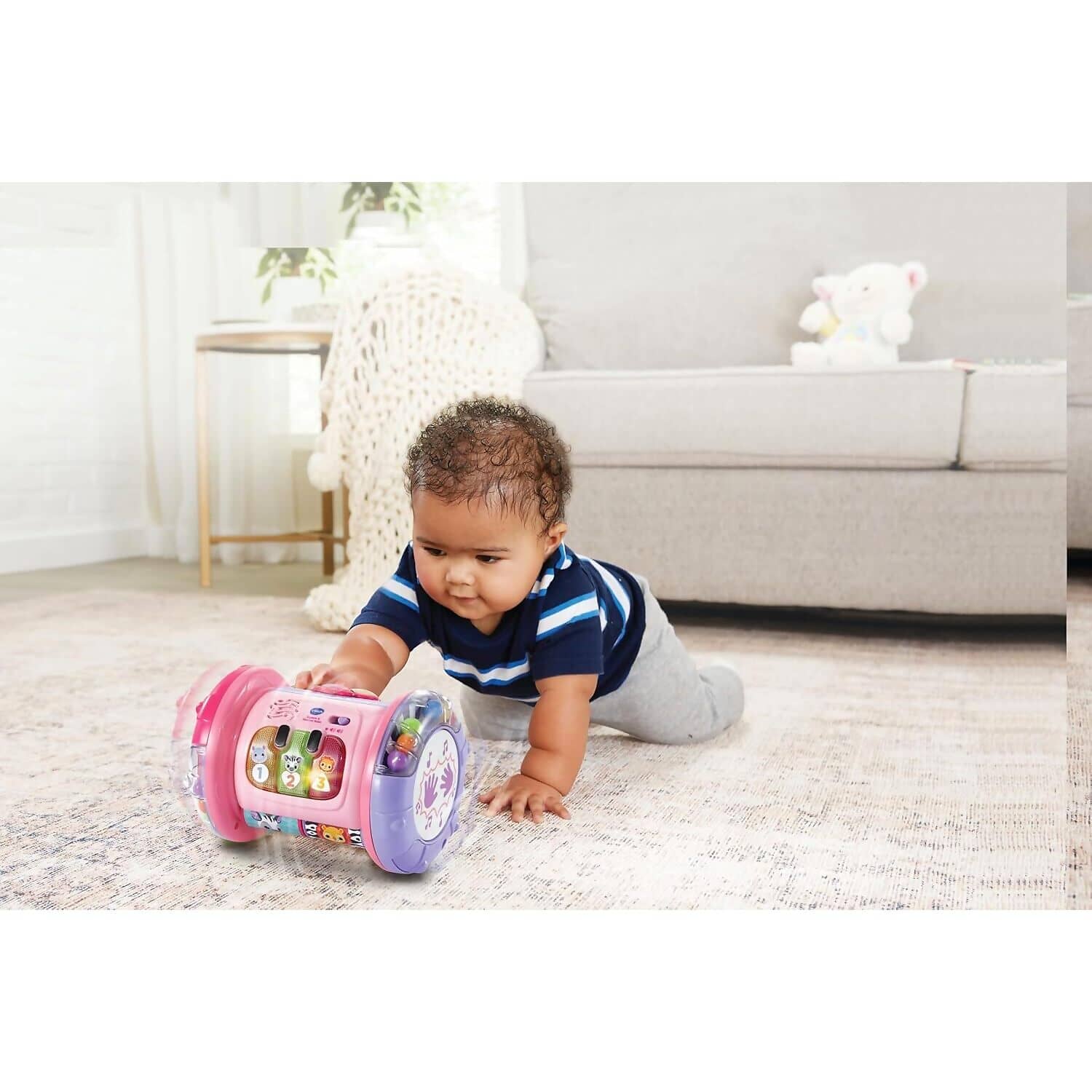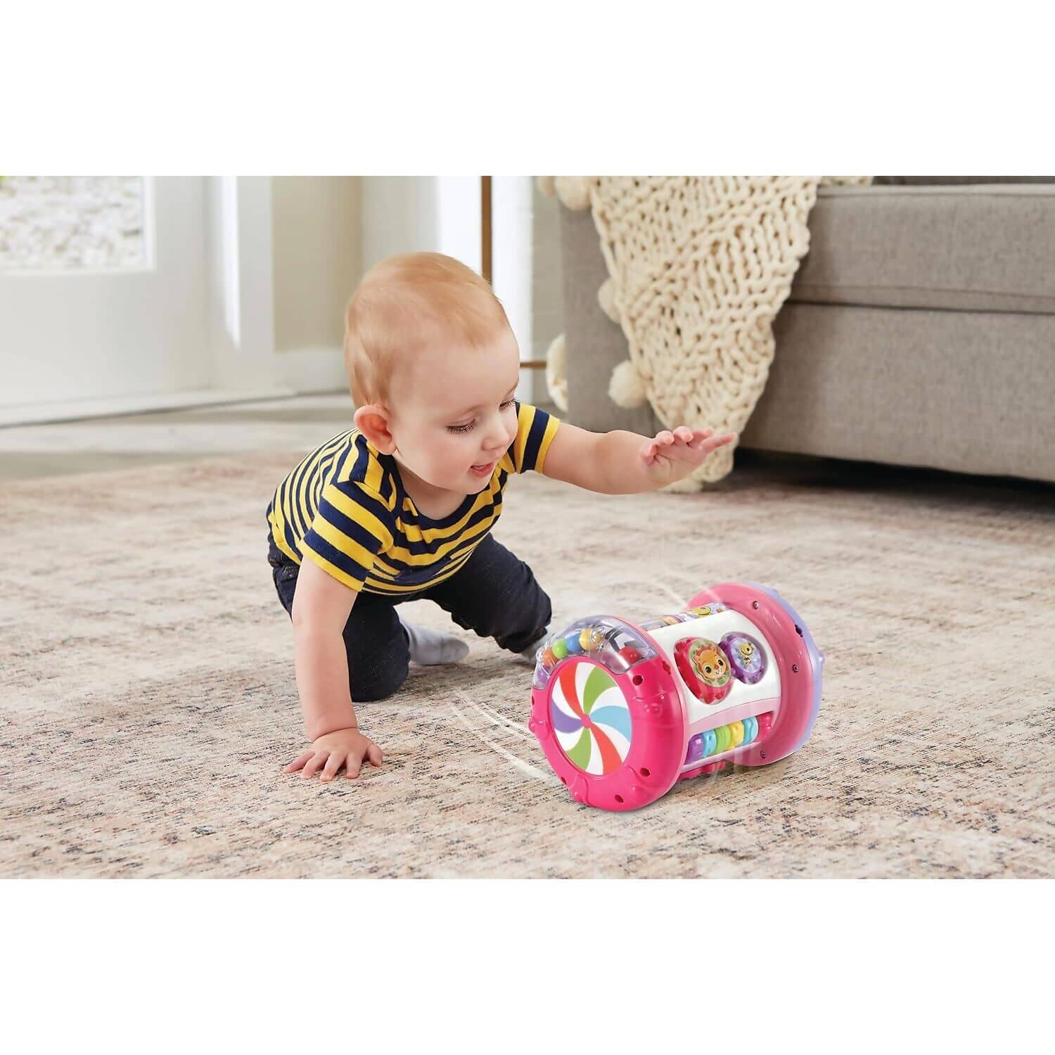The VTech Baby Explore & Discover Roller – Pink is a vibrant, motion-activated toy designed to grow with your baby from sitting to crawling stages. With five versatile activity zones, it encourages exploration through rolling, pushing and tapping, rewarding movement with cheerful sounds and melodies. Its colourful design and interactive features provide continuous engagement while supporting early developmental milestones.