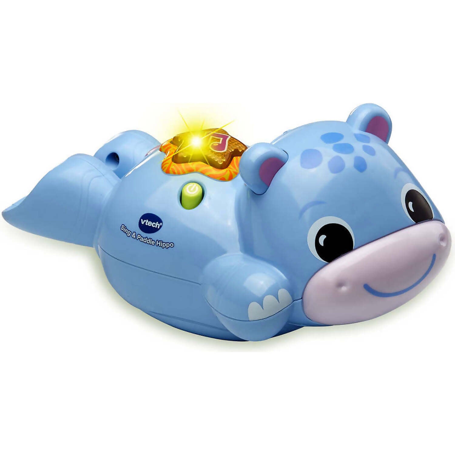 Sing & Paddle Hippo loves water! Start bath time with a swimming lesson from Hippo! Pop hippo in the bath where a clever sensor detects he is in water, then develop motor skills and press the light up star button to start hippo on his bath time swim.