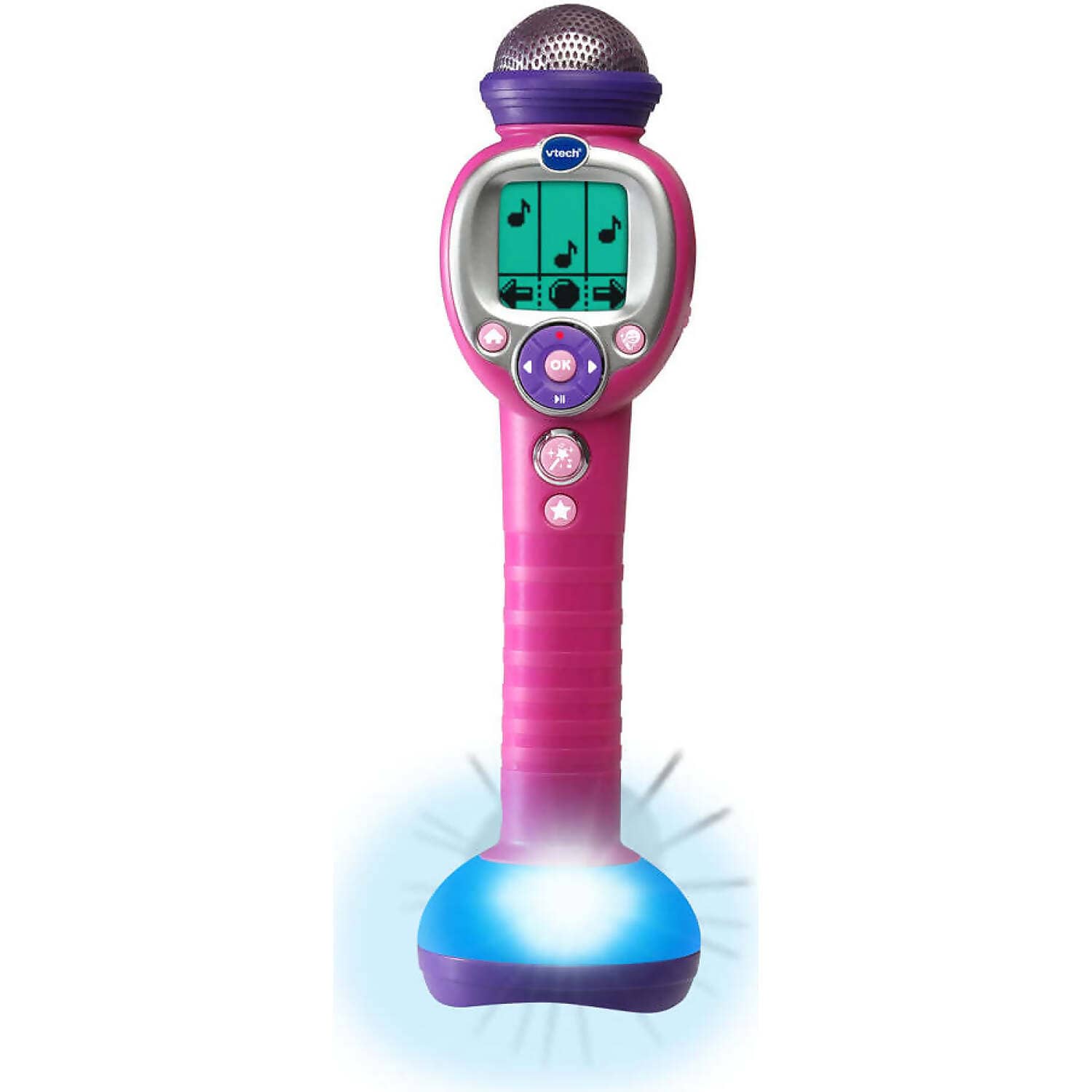 The Vtech - Kidi Superstar Move is a portable microphone that transforms any child into a superstar. With its built-in speaker and colour-changing lights, it creates an exciting atmosphere for performances. The microphone also features voice-changing effects and sound effects like applause to enhance the fun.