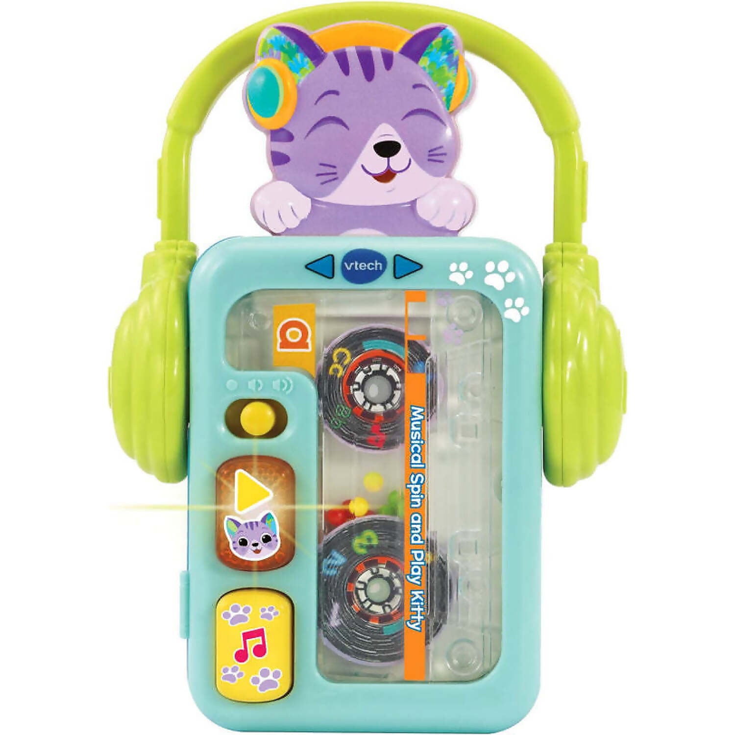 This on-the-go, retro music player style toy with carry handle earphones is a great way to introduce your little one to music! With 3 built-in sing-along songs and 18 great melodies covering country, jazz and classical music styles, there's lots of listening fun to enjoy! Watch as Kitty bops up and down and side to side, as you interact with the music player. The tape will spin and the colourful beads will pop! Encourages the development of motor skills and an awareness of cause & effect relationships.