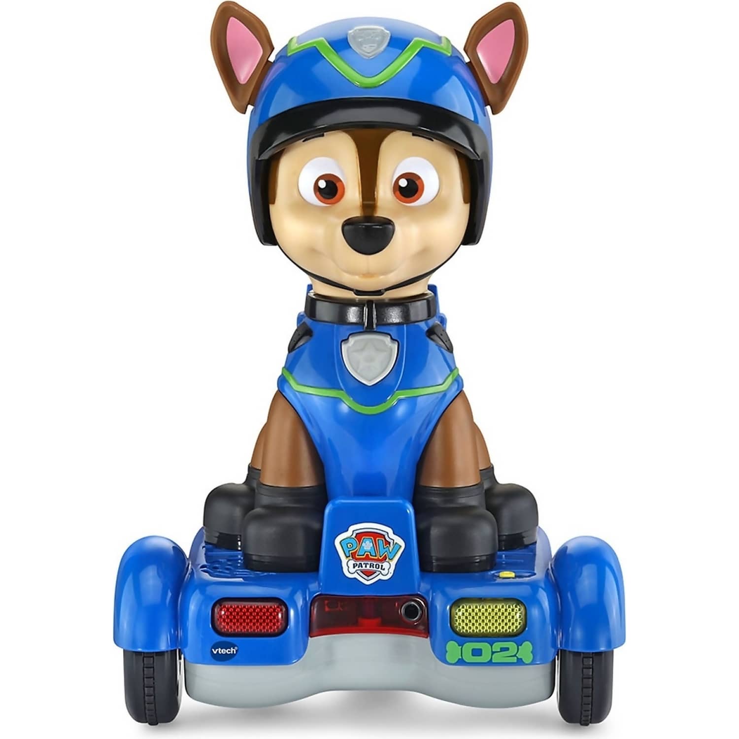 Join Chase on a thrilling spy adventure with the VTech - PAW Patrol Hover Spy Chase, where movement, mystery and learning collide. This interactive toy zooms forward and backward on a hoverboard, cleverly avoiding obstacles while turning its head. Children can play “I Spy” by listening to clues and selecting the correct answers using Chase’s pup tag and pup pack buttons.
