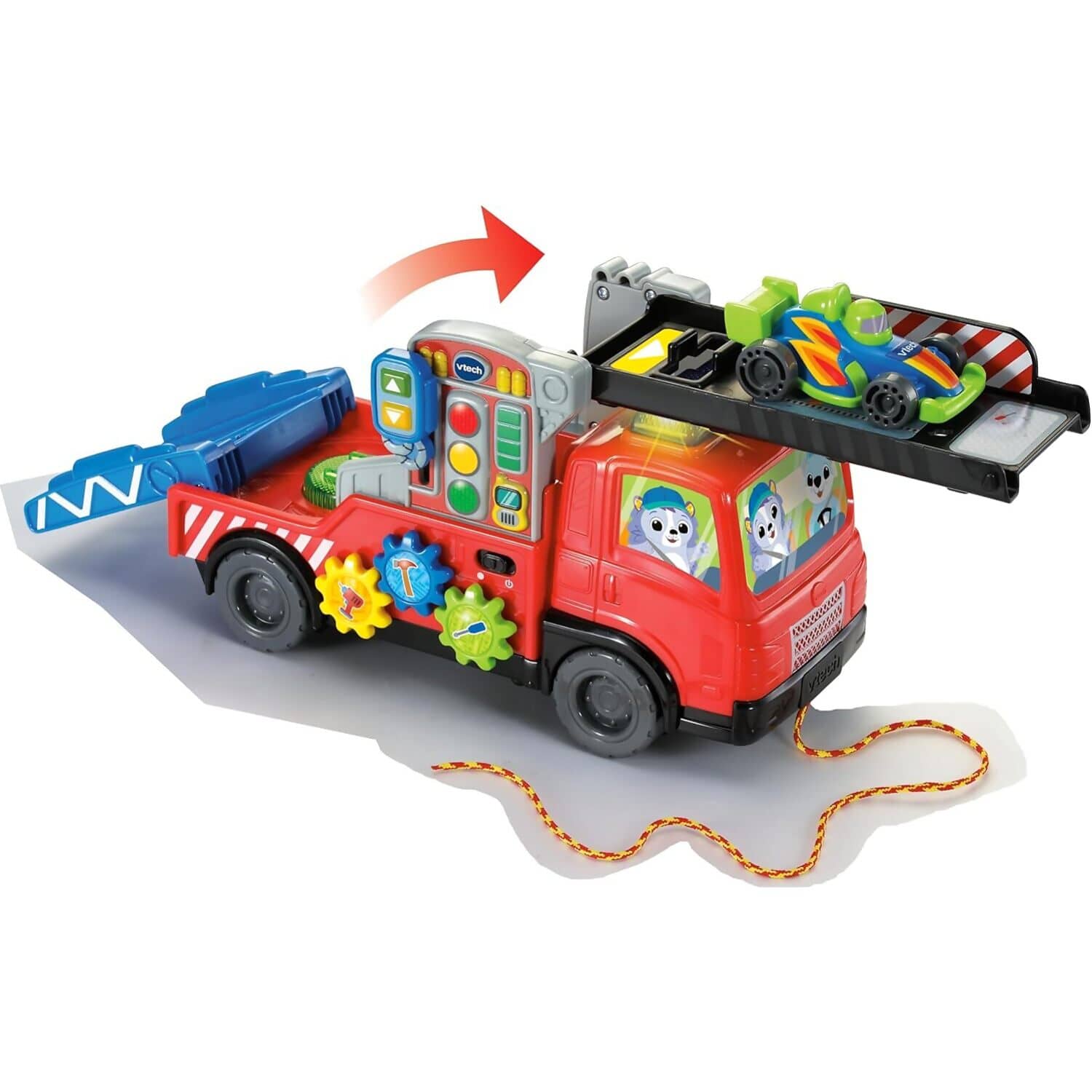 The Vtech Road Rescue Car Carrier is a dynamic three-in-one toy that transforms into a car carrier, repair centre, and race ramp. Designed to spark imaginative play, it includes two race cars and interactive features that respond with music, phrases, and sound effects. Children can push or pull the truck, enhancing their gross motor skills while engaging in role play adventures.