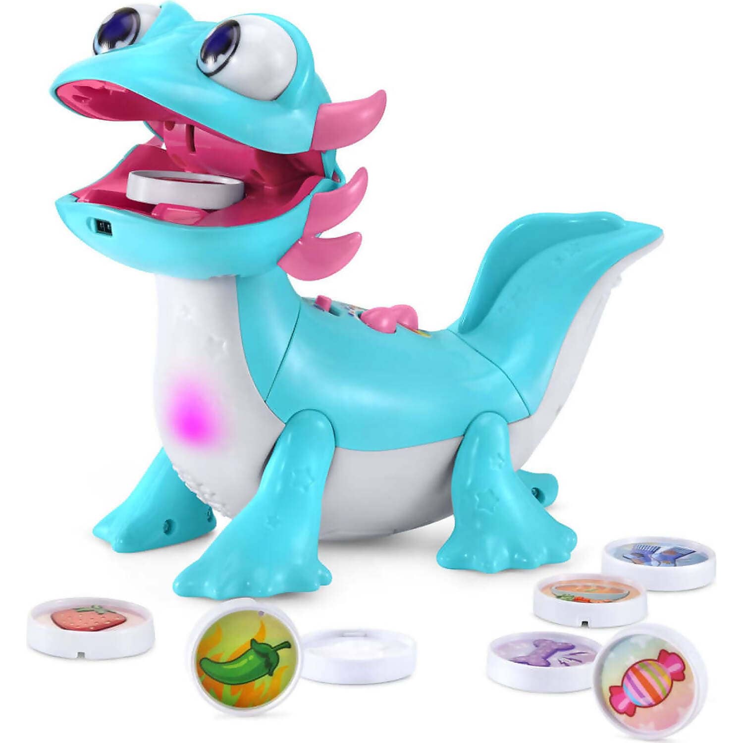 Tasty Treats Axolotl is a hungry Axolotl with a big appetite! Hold a snack piece under his nose so he can sniff it, then feed him when he sticks out his tongue. Watch his belly light up as he reacts to each snack and describes the colour, smell and taste of what he's eating.