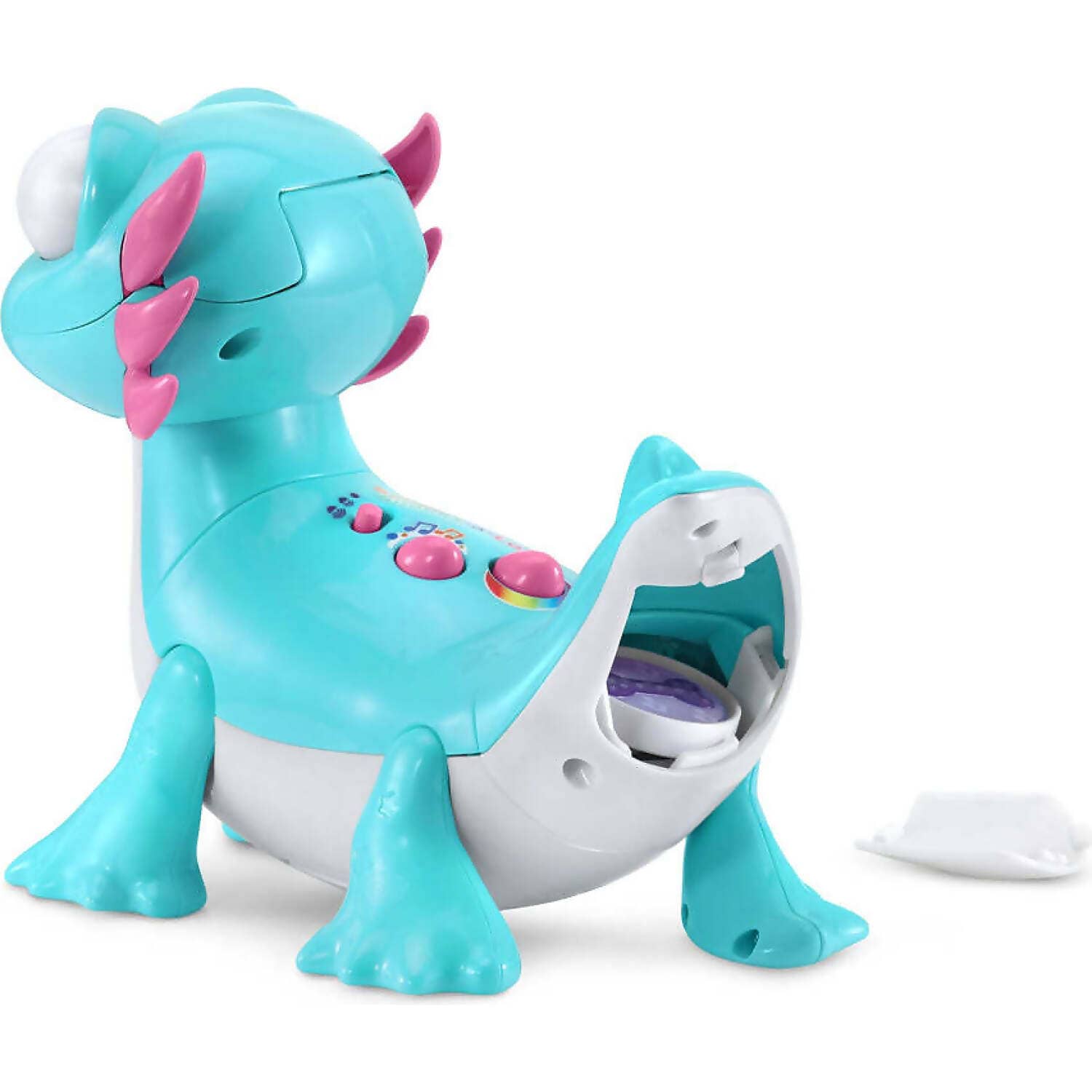 What an interesting flavour! Listen as he describes his favourite foods as he eats, or press his back buttons to jam along with tunes about colours, flavours and interesting axolotl facts. Axolotl can swim or walk on land! When playtime is over, store the snacks inside his tail for a quick and easy clean up. Let’s eat!