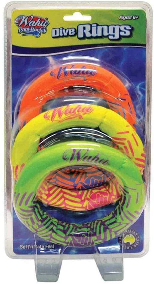 Made from safe and soft neoprene the Wahu Dive Rings are ideal for developing children's dive and retrieve skills. They are also excellent for building underwater swimming confidence in young swimmers. Includes 3 colourful dive rings.