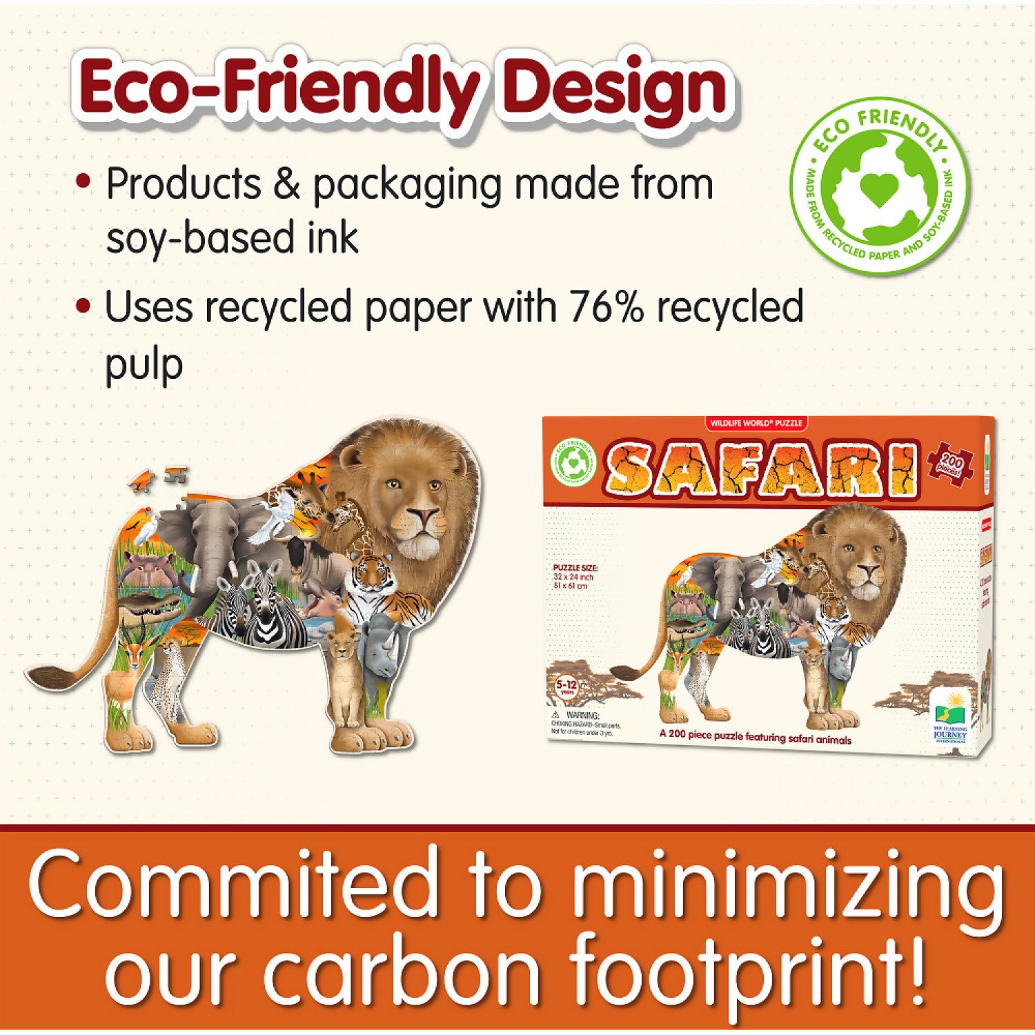 This 200 piece Safari puzzle is shaped as a lion and introduces the environment on the savannah. This 200-piece puzzle will help develop problem solving skills, spike interest, and expand knowledge of different environments.
