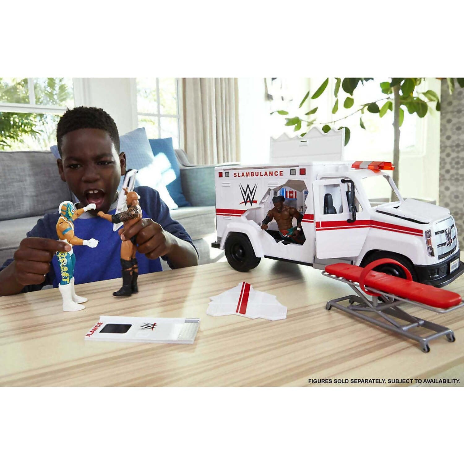 Place a WWE® action figure (sold separately) on the stretcher for even more wrekkin' fun.