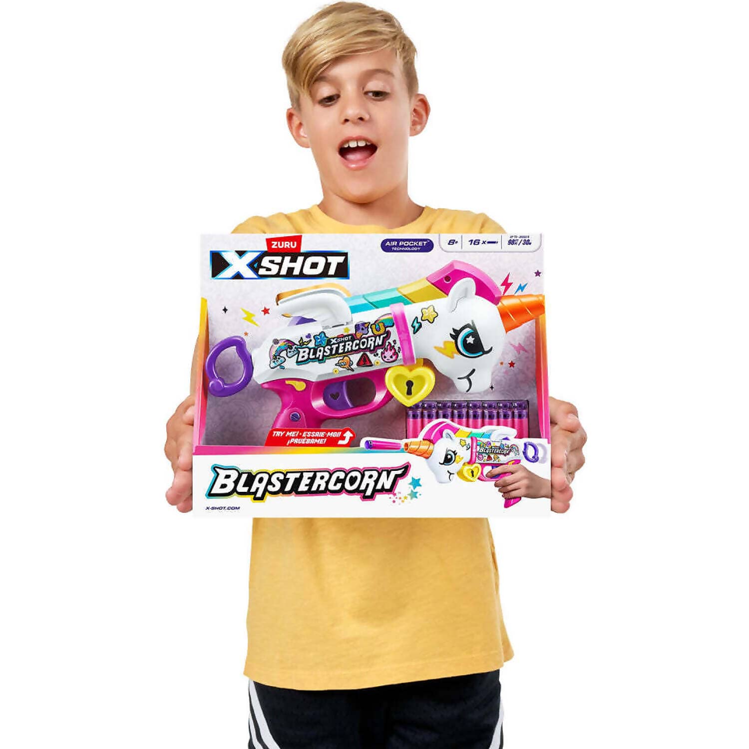Pack Inclusions: 1x X SHOT Blastercorn Blaster; 16x Air Pocket Technology Foam Darts.